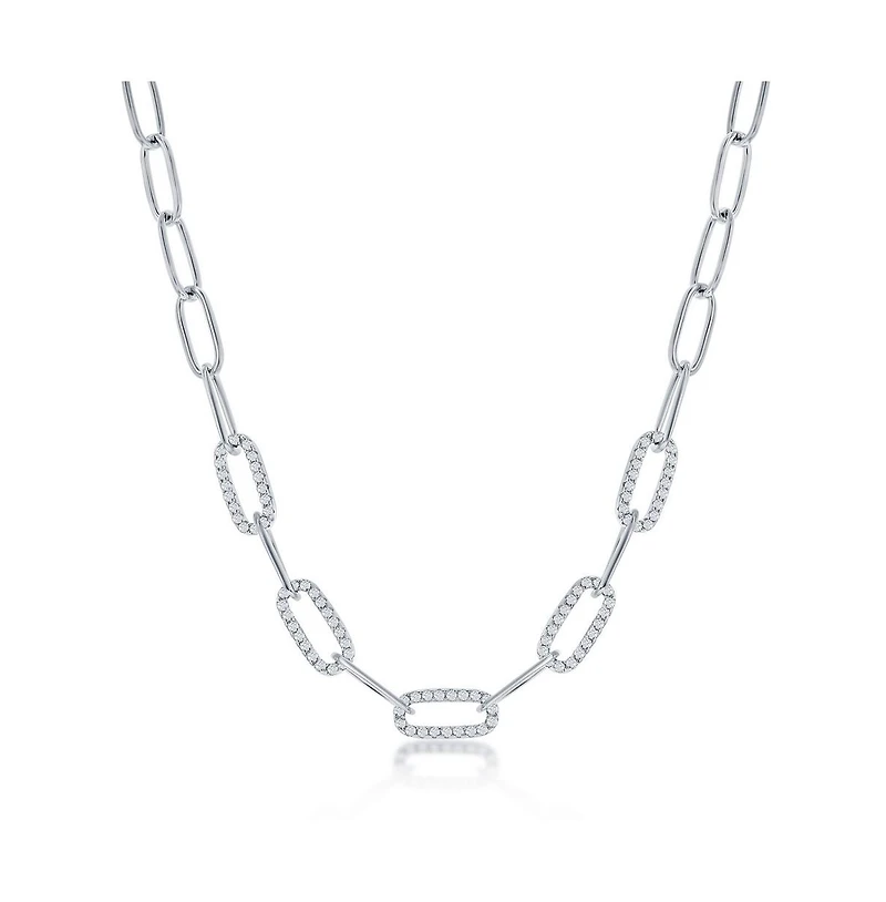 Sterling Silver or Gold Plated Over Sterling Silver 5mm Cz Paperclip Necklace