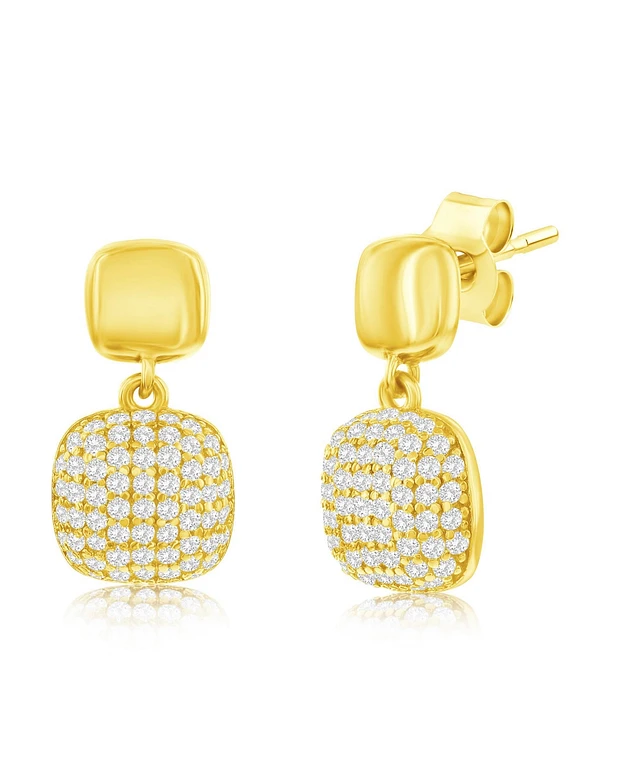 Sterling Silver Cubic Zirconia Square Stud Earrings