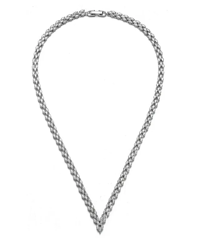 Sterling Silver with White Gold Plated Clear Marquise Cubic Zirconia Three-Row Necklace