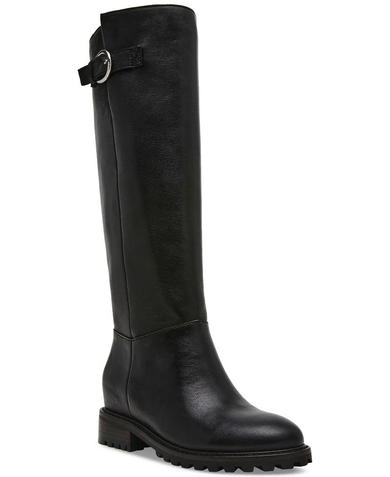 Paired with everything from leggings and skinny jeans to skirts, the Steve Madden Leary boots dress up or down in a cool straight silhouette with subtle buckled details.