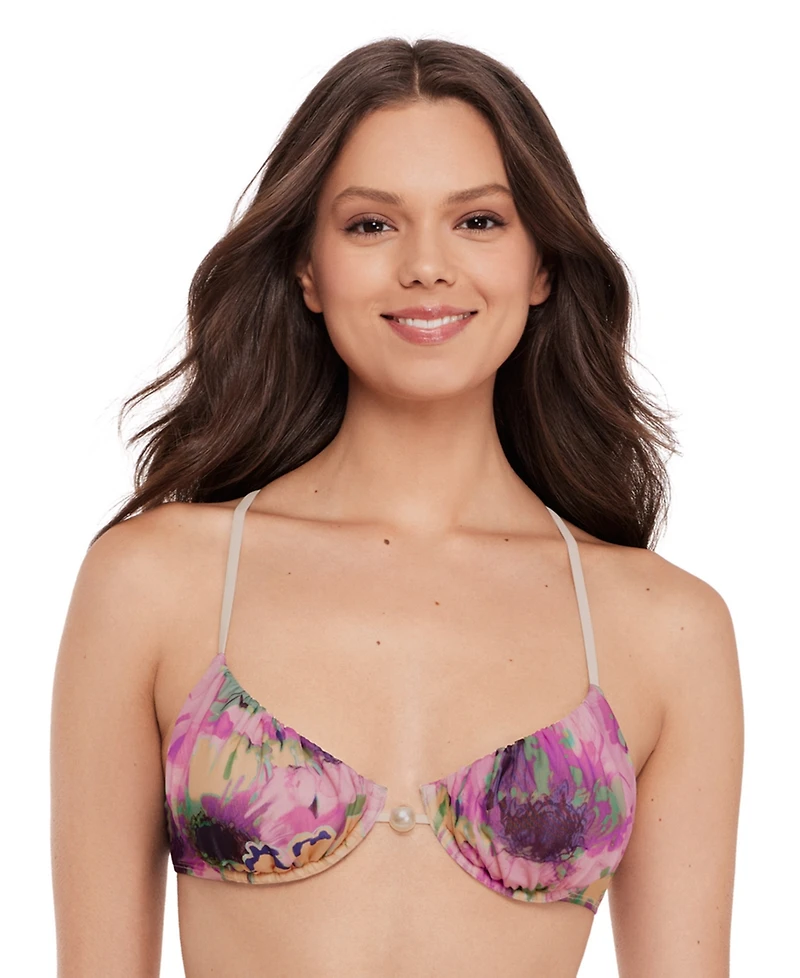 Refine swim styling with this Steve Madden bikini top, where a V-neckline and underwire construction enhance shaping with supportive structure. Adjustable straps allow a personalized fit, while removable cups add versatile wear options.