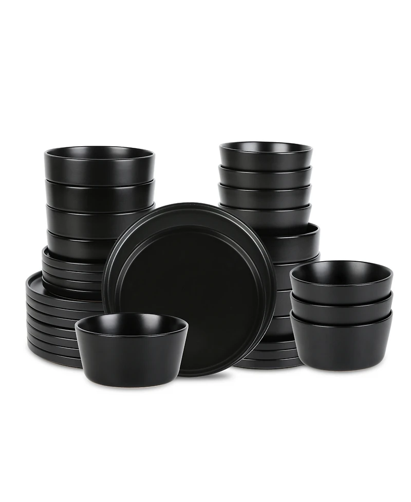 Make a loud statement with your dishes. The Stone Lain 32-Piece Stoneware Round Dinnerware set in Black is unforgettable. These home essentials are expertly crafted, artfully designed, and reminiscent of celebrity after-parties. These pieces go great in a kitchen, dining or outdoor setting. Lay out your most stylish tablecloth, cutlery and stemware, and let the Stone Lain 32-piece stoneware dishes set do the rest. Stone Lain creates unforgettable dinnerware to make every occasion memorable.