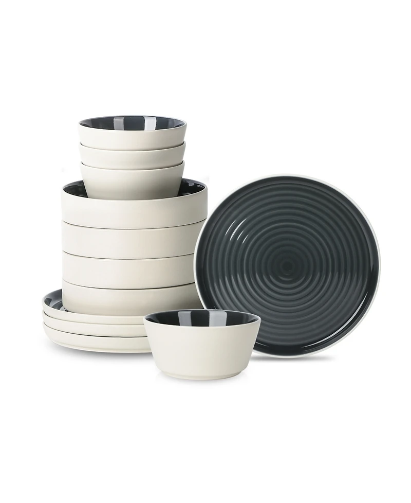 Bring a modern look to your table with the Stone Lain Elica stoneware dinnerware set. Defined by high-rimmed plates, straight edged pasta and soup bowls, and textured centers throughout, this is a chic collection available in a variety of statement-making colorways. The Elica includes 12 pieces: 4 dinner plates 10.47in., 4 dinner bowls 24 fl. oz. and 4 soup bowls 25 fl. oz.