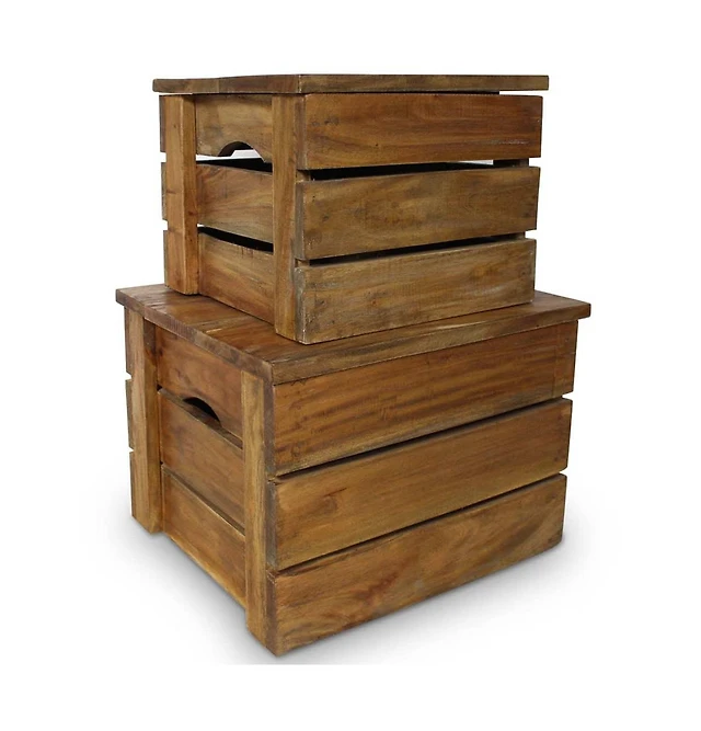 Storage Crate Set 2 Pieces Solid Mahogany Wood