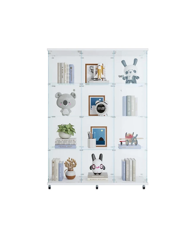Streamdale 3 Door Glass Cabinet Glass Display Cabinet with 4 Shelves, White