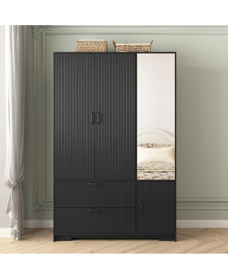 Streamdale 4-Door Wardrobe with Mirror, Led, 2 Drawers, Black