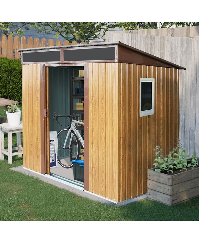 Streamdale 8 ft x 6 ft Outdoor Metal Storage Shed with Window and Transparent plate for Garden, Lawn (Coffee)