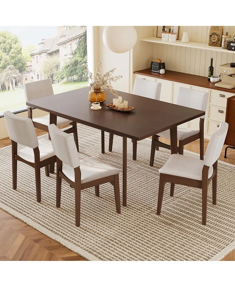 Streamdale 7-Piece Modern Dining Set - Solid Wood Table & Upholstered Chairs, Walnut Finish