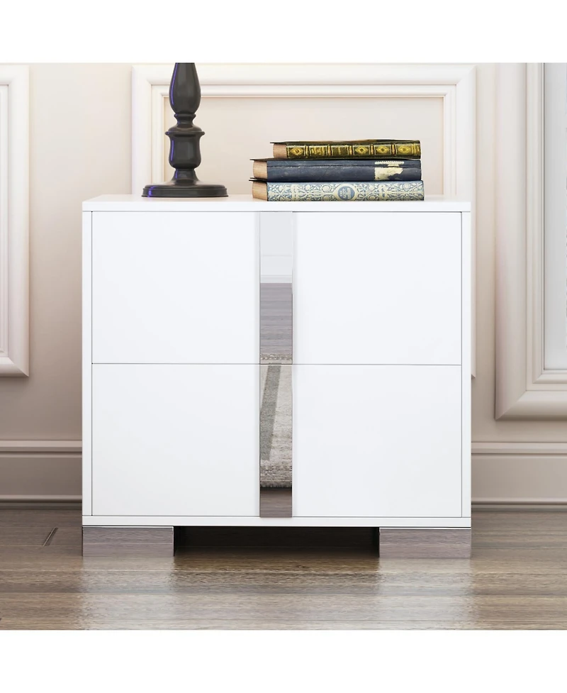 Streamdale Elegant White Mirrored Nightstand with 2 Drawers