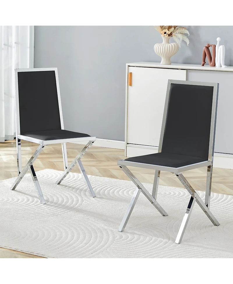 Streamdale Furniture 2-pack Black Pu dining chairs with silver metal legs.