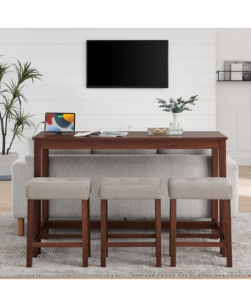 Streamdale Furniture 59" Bar Table Set w/ Power Outlet & 3 Stools