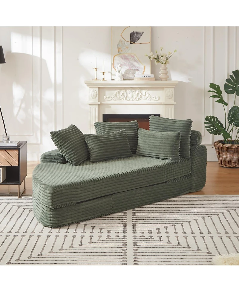 Streamdale Furniture 78.5-Inch Corduroy Semi-Circular 2-in-1 Sofa Bed with Neck Pillow & 5 Throw Pillows