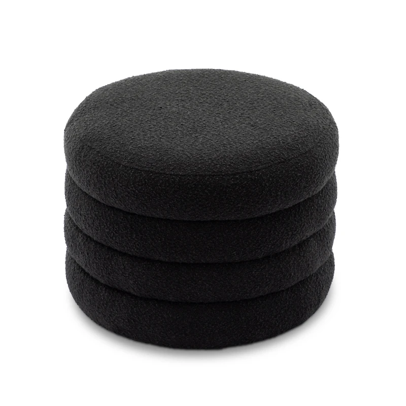 Streamdale Furniture Boucle Fabric Storage Round Ottoman Footstool With Wooden Shelving, Black