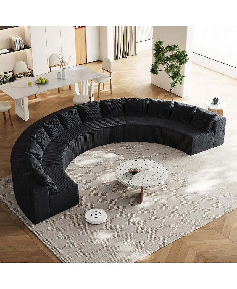 Streamdale Furniture Corduroy Curved Sectional Foam Sofa with 12 Pillows & Six Modules