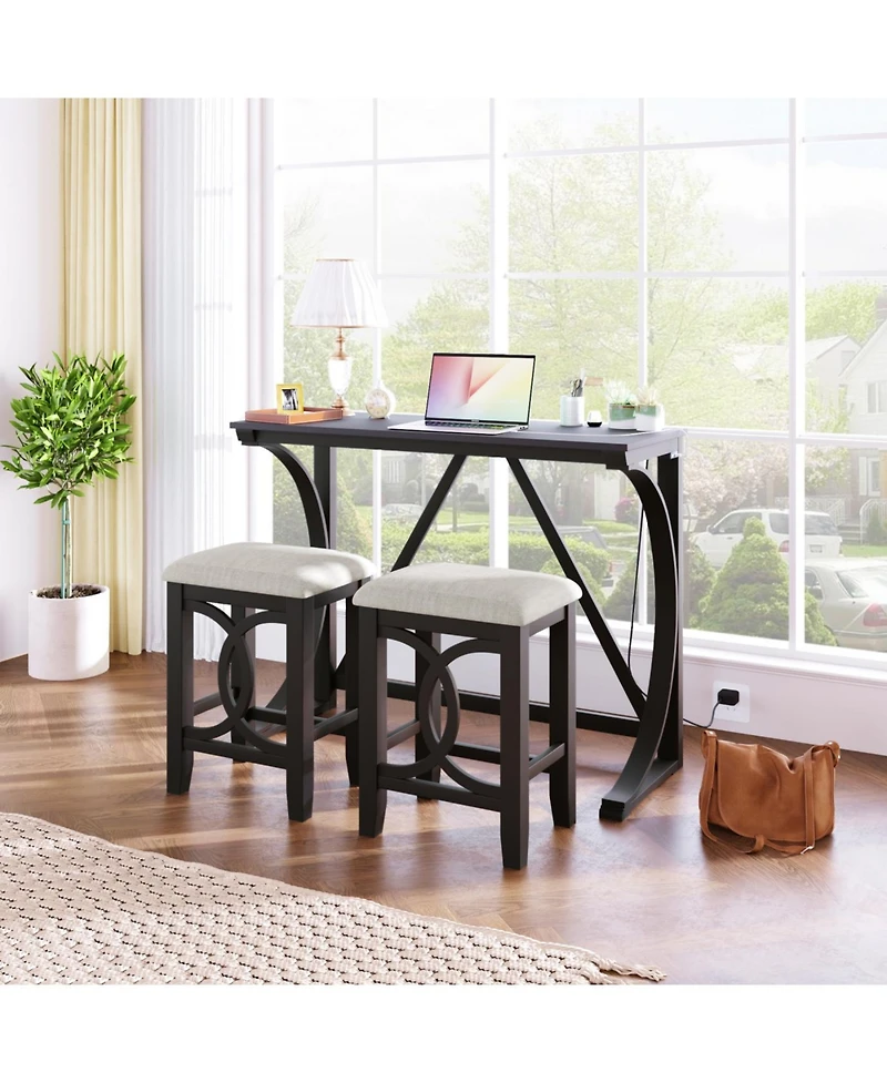 Streamdale Furniture Rubber Wood, Mdf Farmhouse Counter Height Dining Set with Usb & Upholstered Stools