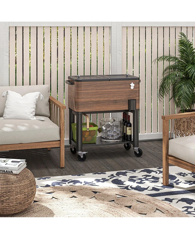 Outsunny Patio Cooler Cart 104 Quart Rolling Ice Chest with Shelves,