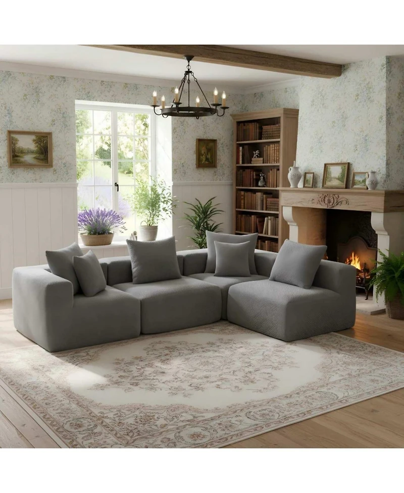 Streamdale Furniture Streamdale Modular L-Shaped Chenille Deep-Seat Couch with Pillows - Grey in San Juan, PR