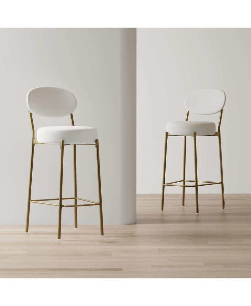 Streamdale Furniture Streamdale Upholstered Velvet Bar Stools with Backrest (Creamy White), Set of 2