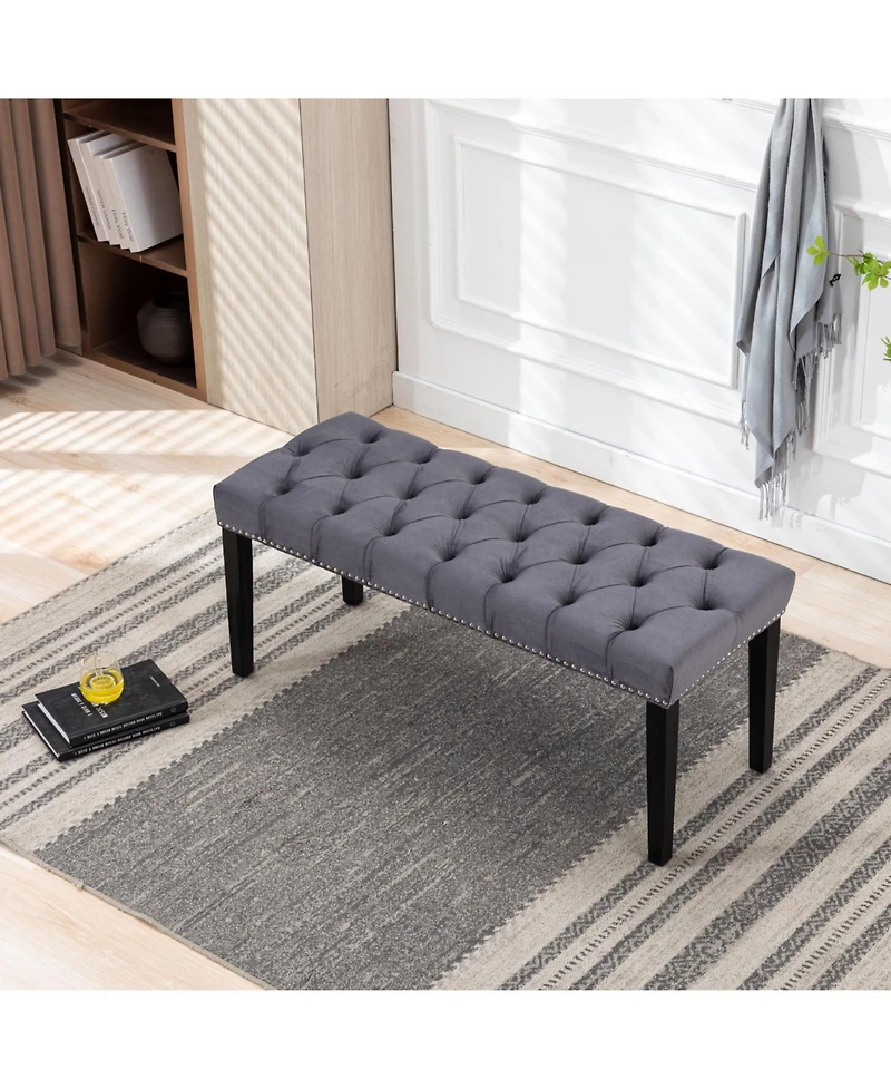 Streamdale Furniture Tufted Velvet Bench Ottoman - Dark Gray