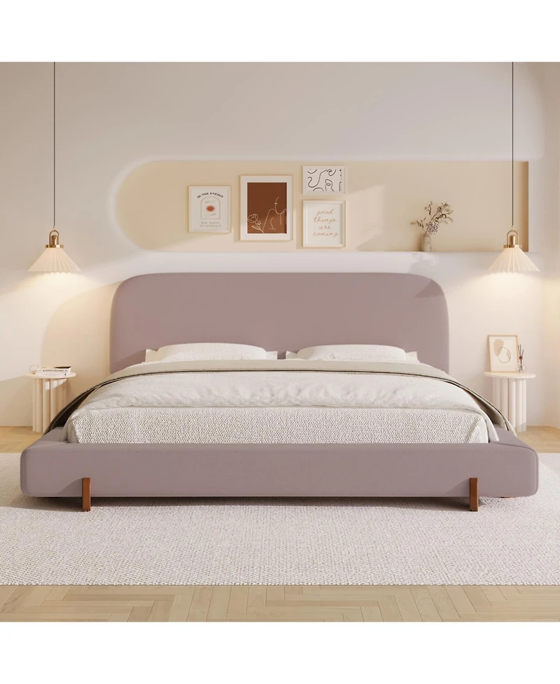 Streamdale Unique Design, Velvet and Solid Wood Legs Upholstered Bed Frame, King