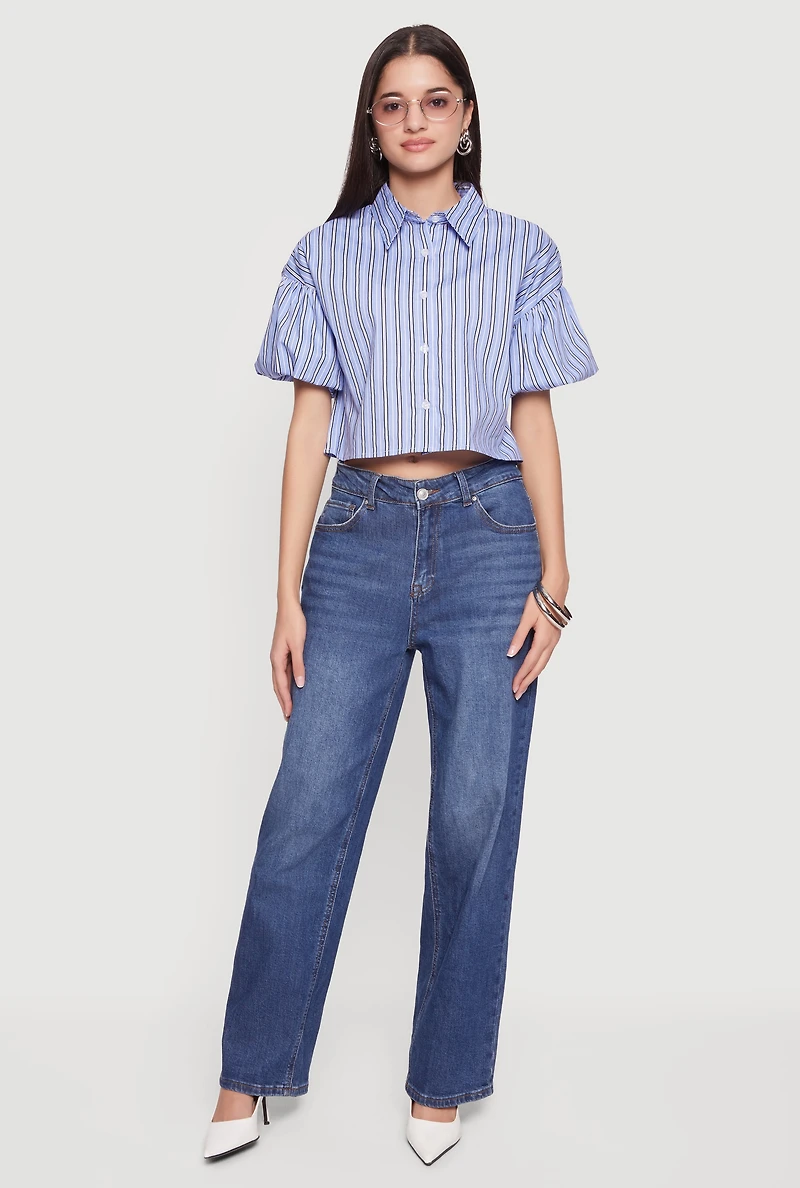 Striped Bubble Sleeve Cropped Blouse in San Juan, PR