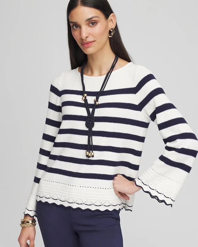 Pointelle Scalloped Hem Flare Sleeve Pullover