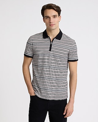 Quality shines through in this premium pima cotton pique polo. Featuring a smooth, silky feel and blended with stretch for endless comfort, it's the perfect polo for every day wear. This style features a striped pattern, a zip placket, and a contrast point collar.