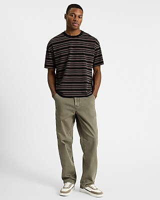 A modern loose fit tee with a slightly cropped hem, crew neckline, and short sleeves. This style is crafted from a heavyweight cotton-blend fabric and features a striped pattern.