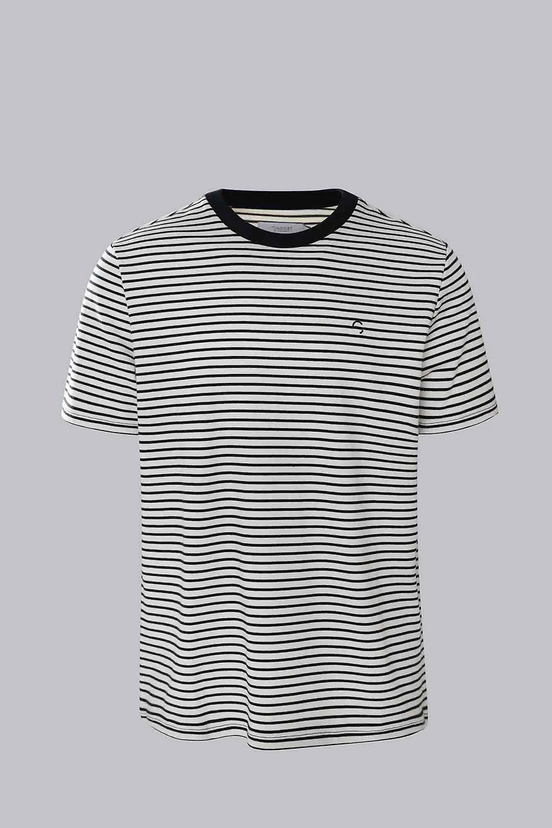 Shop the striped T-shirt. Navy and white 100% cotton tee with contrast crewneck and embroidered logo — true to fit and easy to wear.