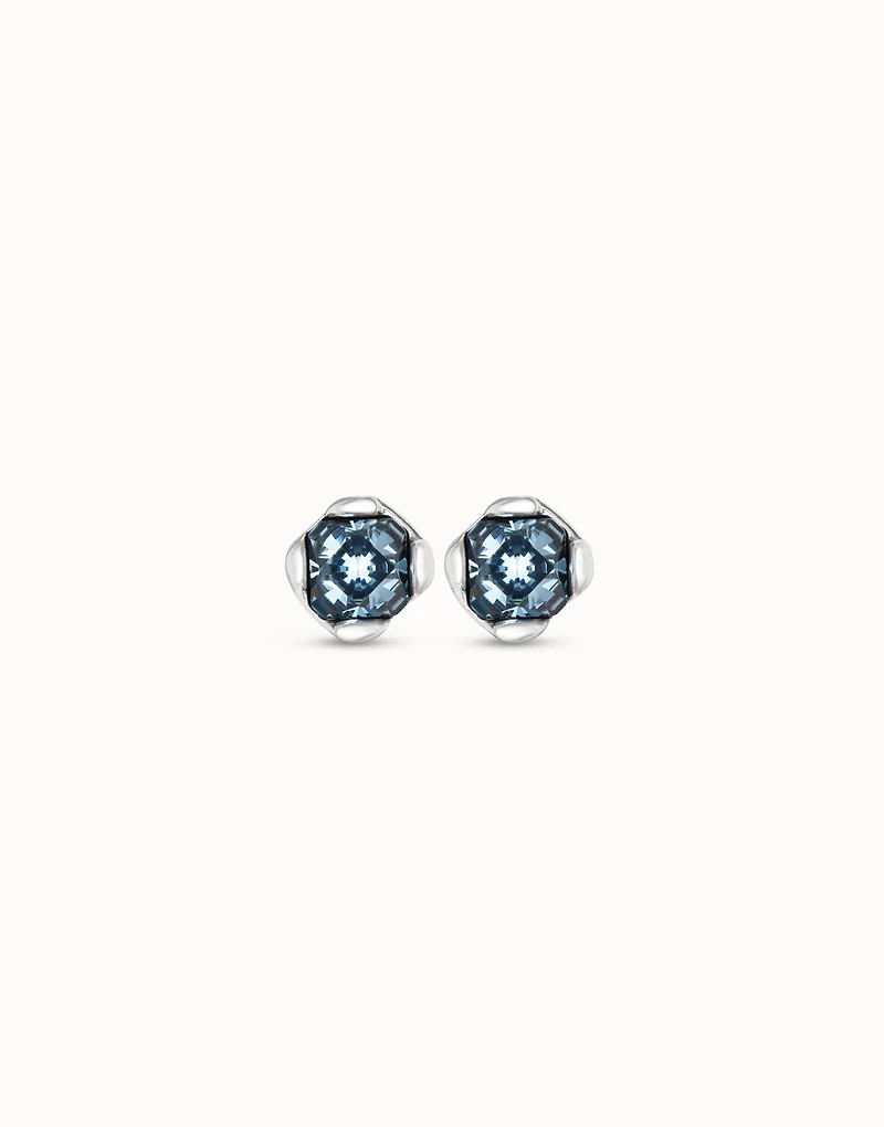 Sterling silver-plated earrings with a blue faceted crystal and nut clasp with UNOde50 logo engraved. This jewel has been handmade in Spain.