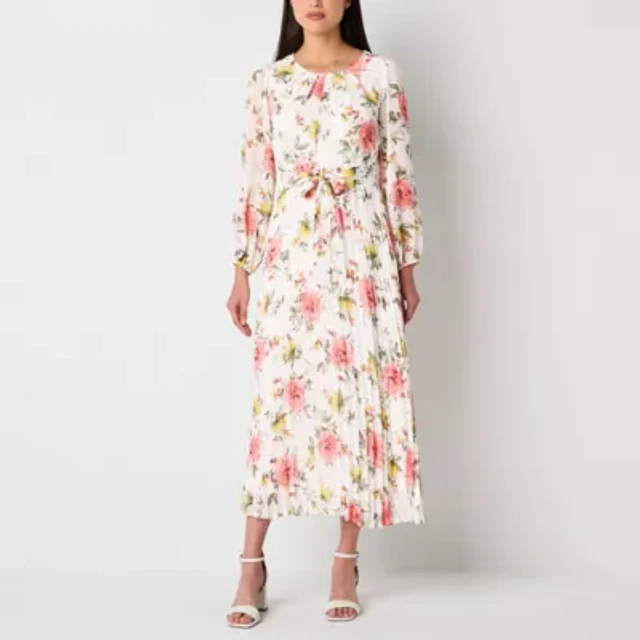 Studio 1 Womens Long Sleeve Floral Maxi Dress