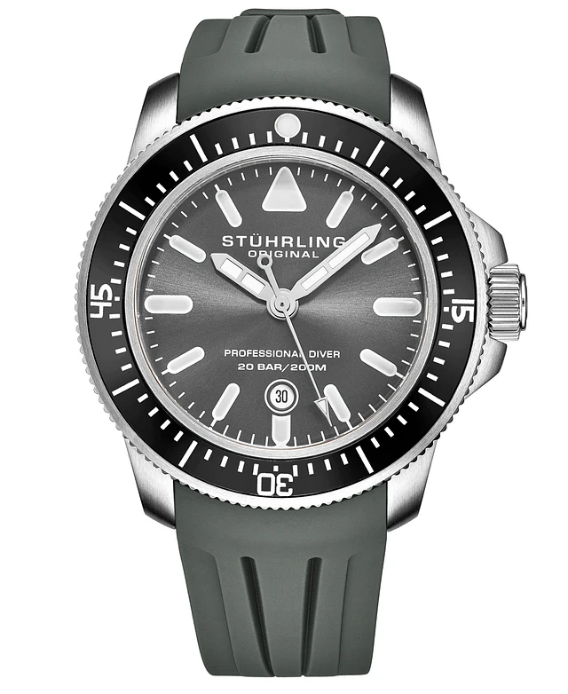 Stuhrling Men's Gray Silicone Rubber Strap Watch 43mm