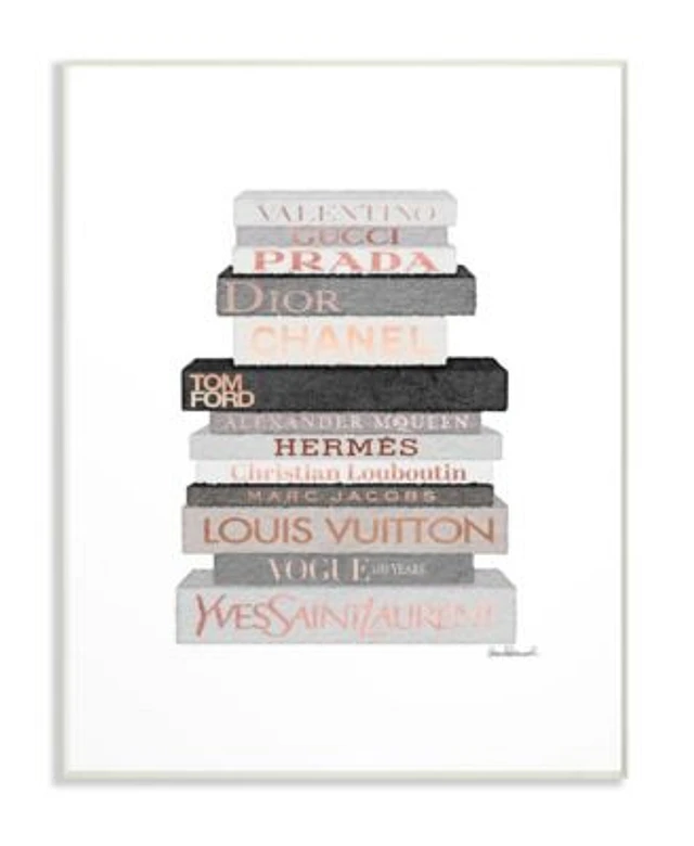 Stupell Industries Neutral Gray Rose Gold Tone Fashion Bookstack Wall Plaque Art Collection