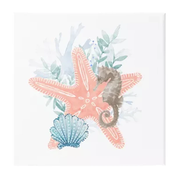Stupell Industries Seahorse Starfish Layered Coral Canvas Art