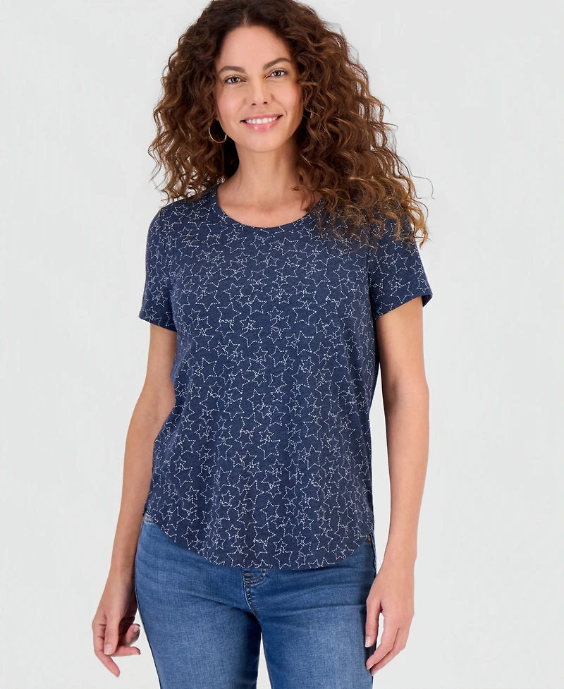 Create star-spangled excitement with this fun look from Style & Co, a relaxed cotton-blend T-shirt with an allover print.
