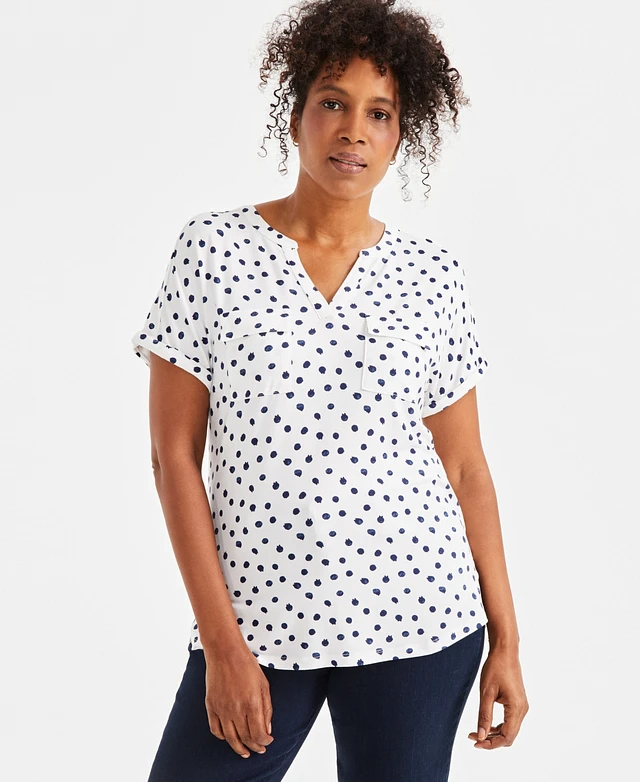 Style & Co Women's Printed Split-Neckline Short-Sleeve Top, Exclusively at Macy's