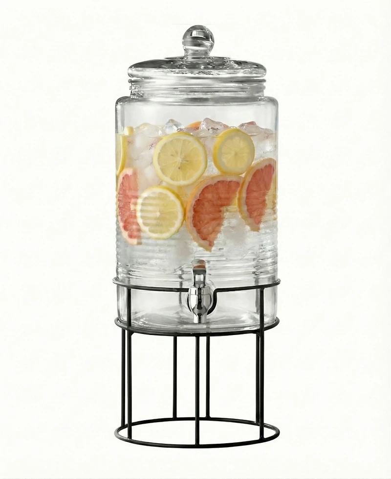 Display and serve chilled drinks for a variety of occasions. Perfect as a glass water dispenser, punch dispenser for parties, lemonade dispenser, sangria dispenser, iced tea dispenser, or container for mixed drinks cocktails.