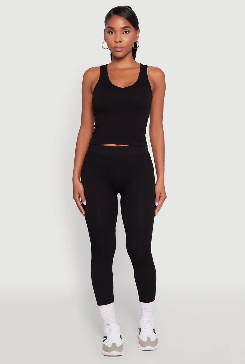 Stylish High Waisted Seamless Ribbed Knit Leggings in San Juan, PR