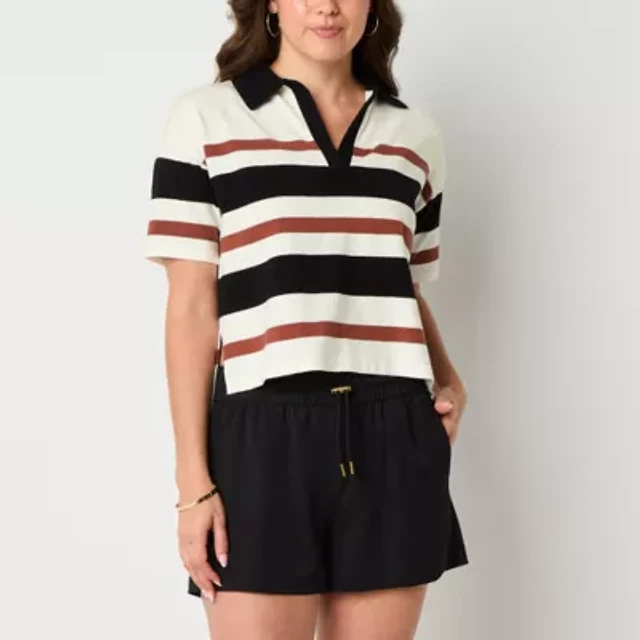 Worthington Womens Short Sleeve Striped Pullover Sweater