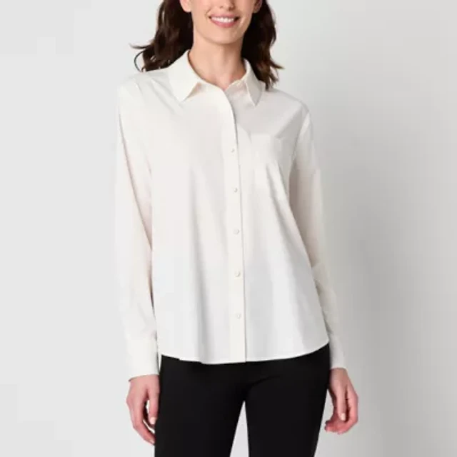 Stylus Womens V Neck Long Sleeve Button-Down Shirt