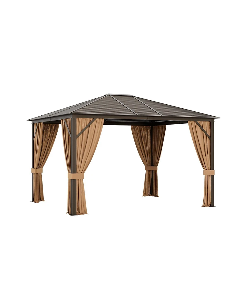 Sugift 12 x10 Feet Outdoor Hardtop Gazebo with Galvanized Steel Top and Netting-Brown in San Juan, PR