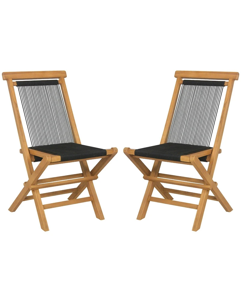 Sugift 2 Piece Indonesia Teak Patio Folding Chairs with Woven Rope Seat and Back for Porch Backyard Poolside