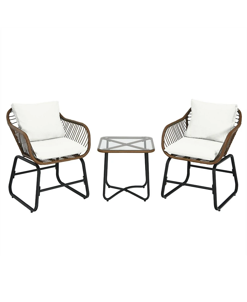 Sugift 3-Piece Patio Rattan Bistro Dining Set with Teak Wood Side Table in San Juan, PR