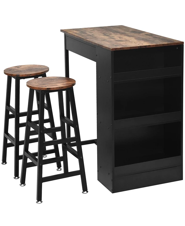 Sugift 3 Pieces Bar Table Set with 2 Stools