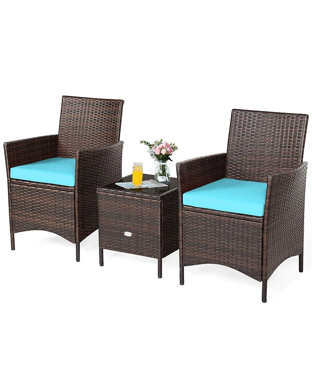 Sugift 3 Pieces Patio Cushioned Rattan Converstaion Set With Glass Table Top