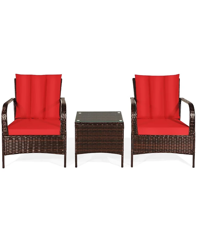 3 Pieces Patio Wicker Conversation Set with Cushion