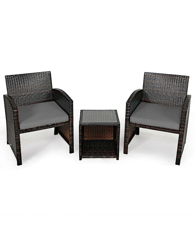 Sugift 3 Pieces Rattan Furniture Set with Cushioned Chair Table-Black