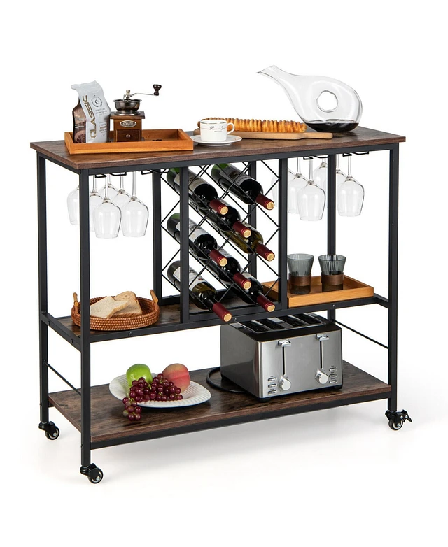 Sugift 3-Tier Wine Bar Cabinet with 8 Bottles Rack and 12 Glasses Hanger