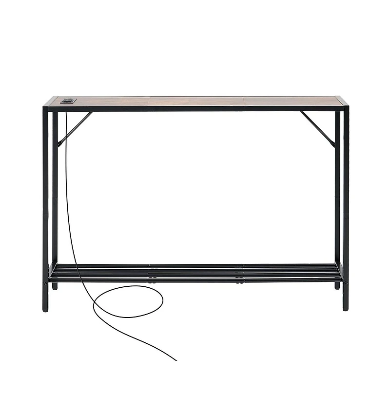 Turn a tight hallway or the space behind the sofa into a functional charging zone with this 2-tier console table. Two three-prong outlets and two Usb ports keep phones, lamps and laptops powered, while a 70.1 in cord plugs into distant outlets cleanly. The Mdf shelves rest on a carbon steel frame with adjustable feet that level uneven floors, and the included anti-tip hardware secures the table against tipping. Setup finishes in roughly 30 minutes thanks to numbered parts and an illustrated manual.