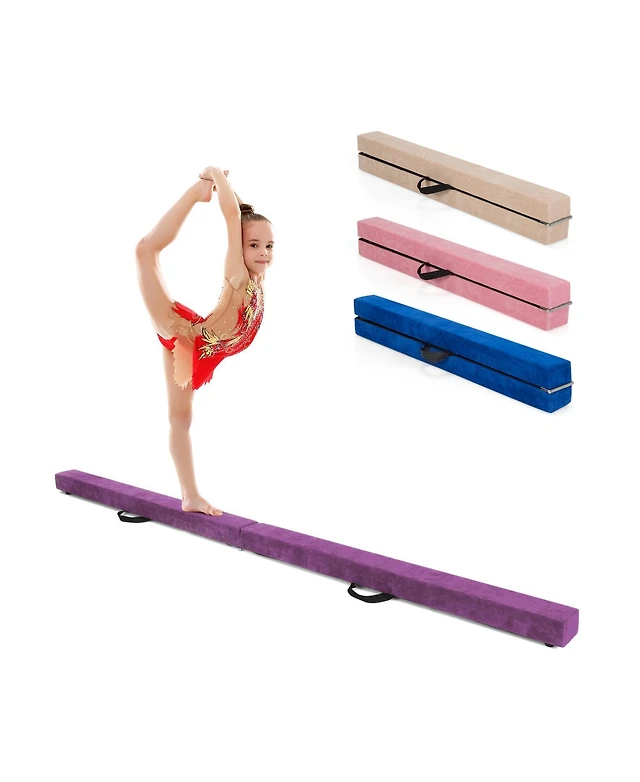 Sugift 7 Feet Folding Portable Floor Balance Beam with Handles for Gymnasts-Purple